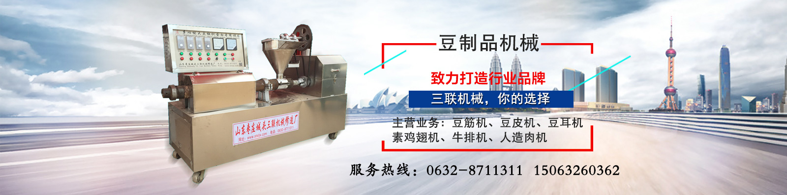山亭區(qū)城頭三聯(lián)機(jī)械修造廠成立于1994年,位于鐵道游擊隊(duì)故鄉(xiāng)山東省棗莊市山亭區(qū)工業(yè)園,本地區(qū)交通十分便利,京福高速公路、京滬鐵路、104國道由此貫穿,是全國生產(chǎn)豆制品,規(guī)模較大的生產(chǎn)基地。山亭區(qū)城頭三聯(lián)機(jī)械修造廠經(jīng)過不斷的努力和研發(fā)終于有所突破,本廠的產(chǎn)品得到廣大消費(fèi)者的信任和擁護(hù),主營豆制品機(jī)械和麻辣面食機(jī)械:素牛排機(jī)、素雞腸機(jī)、素雞脯肉機(jī)、豆蝦機(jī)、豆魚機(jī)..